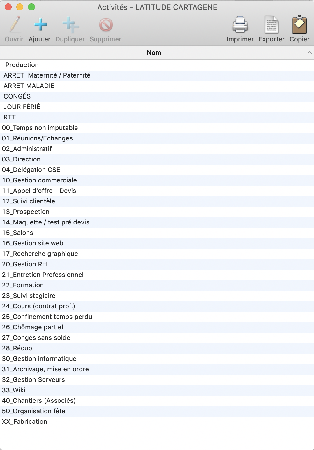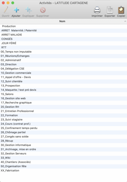 liste des activités